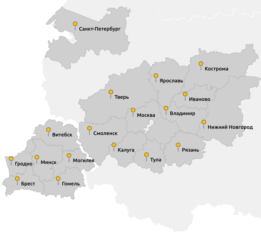 Осуществляем перевозки сборных и комплектных грузов по территории Беларуси и Центральной России в кратчайшие сроки (от 1 дня):